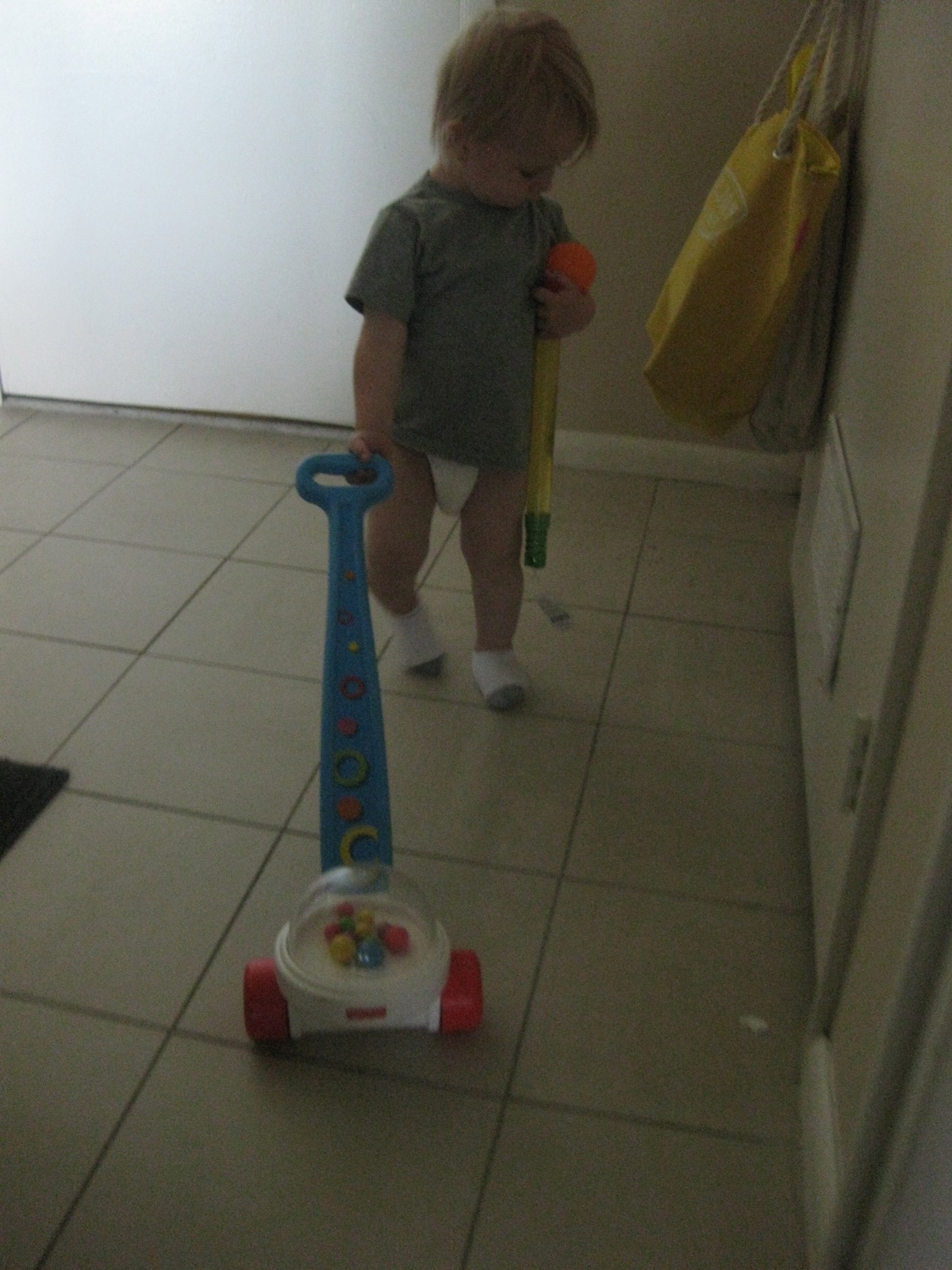 And this day he keep trying to carry his little basketball, his bubble wand and push his corn popper...