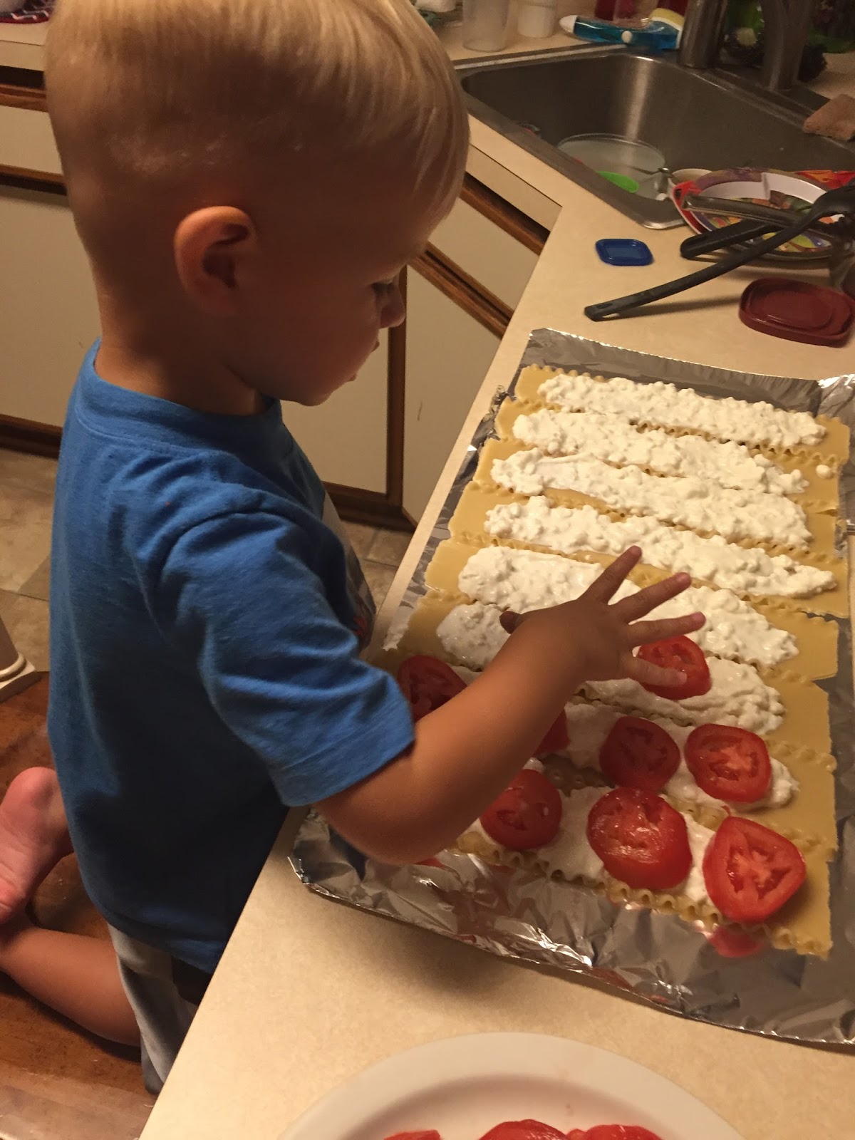Kempton...sweet buddy! He helped me make the entire dinner one night! He wanted to help do everything. Sometimes I had to make things up for him to do while I did some things. For instance, I had him break up an uncooked noodle and put each little piece in the empty egg carton container. It kept him busy so I could do other things!